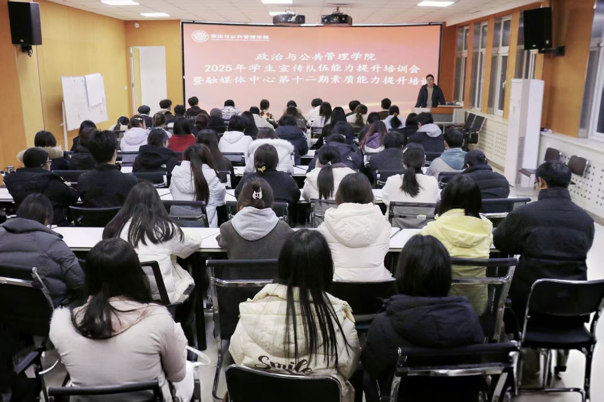 为进一步筑牢学院宣传思想阵地,锤炼学生宣传骨干专业本领,凝聚青年力量、讲好政管故事,12月1日,政治与公共管理学院组织开展2025年学生宣传队伍能力提升培训会暨学生会融媒体中心第十二期素质能力提升培训会。本次培训会由学院辅导员李新华主讲,学院新一届学生会各部门,学院办公室、教科办、党团工作委员会、社工委以及各社团学生宣传员参加活动。