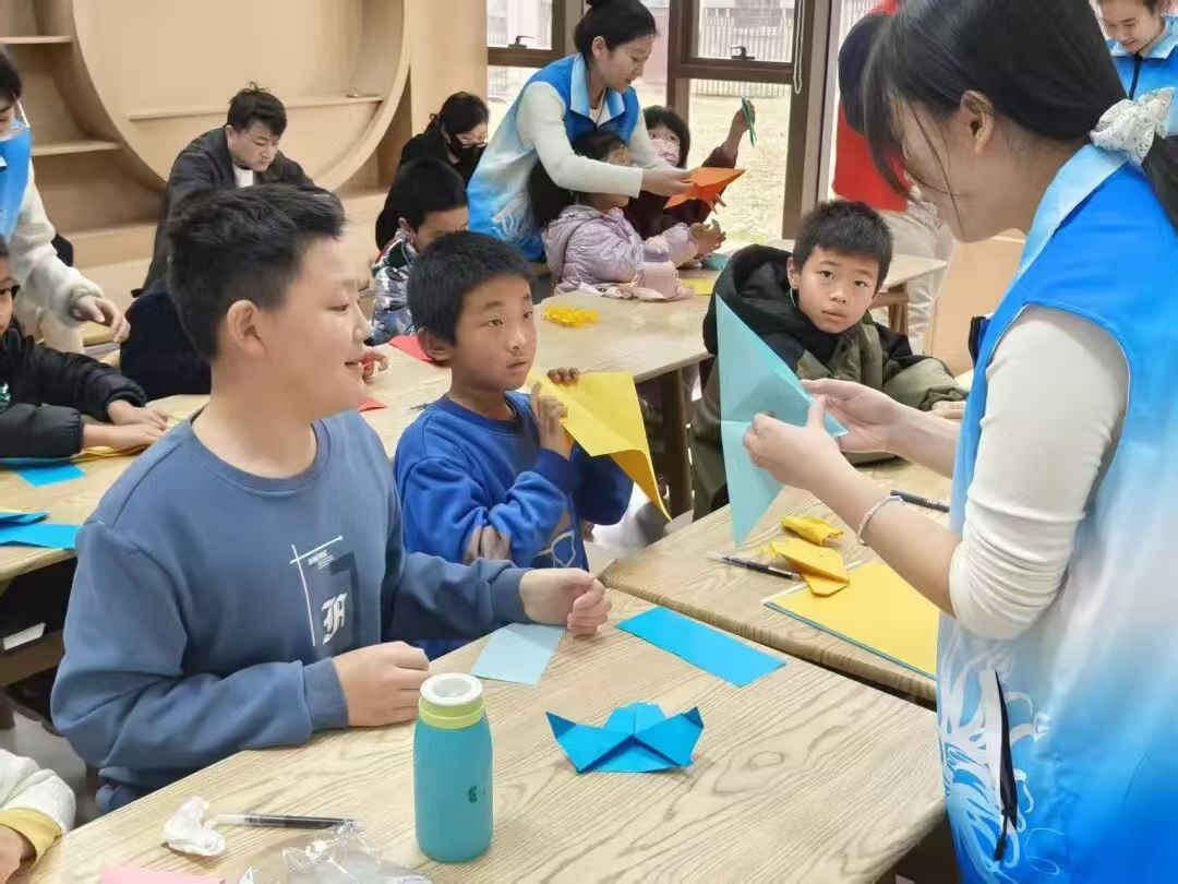 暖橙伴童,启智润心。学院志愿者团队开展多元化志愿服务,以专业力量助力青少年健康成长。惊蛰梦工厂推出“妙趣科学”系列科普剧,通过情景演绎与知识讲解相结合的方式,激发青少年科学兴趣;“阳光方程式”项目创新运用社区游戏形式,系统普及健康知识,夯实青少年身心发展基础;“守护青苹果”计划联合“助梦”支教团搭建云课堂平台,突破地域限制,为乡村儿童提供优质教育资源;大舜文化志愿宣讲团面向青少年儿童深入讲述舜德故事,推动舜文化从历史走进现实。志愿者们以专业服务传递温暖,用青春行动护航成长,在青少年心中描绘出一幅充满希望的暖橙画卷。从科普启智到文化润心,这抹“活力橙”正为孩子们的成长之路注入蓬勃朝气,成为青春画卷中最温暖明亮的底色。