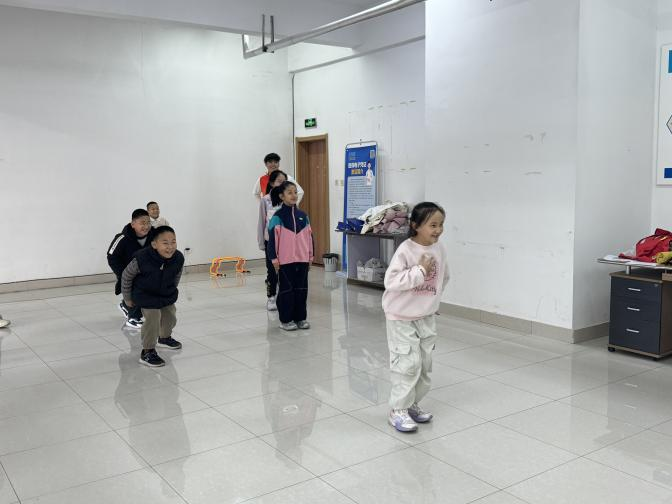 在团队挑战环节,孩子们团结互助,齐心协力。智勇协作闯关赛以集体跳绳、合力运球、双人绑腿折返三大关卡,考验着孩子们的分工与协作,尽显团队精神;百变障碍挑战赛则让孩子们在突发状况中学会策略调整与灵活应变;盲眼障碍通道游戏以角色互换体验,让孩子们深刻理解团队中互相支持的意义;“动物奇兵”接力赛让孩子们在动物动作模仿中展开比拼、释放压力。