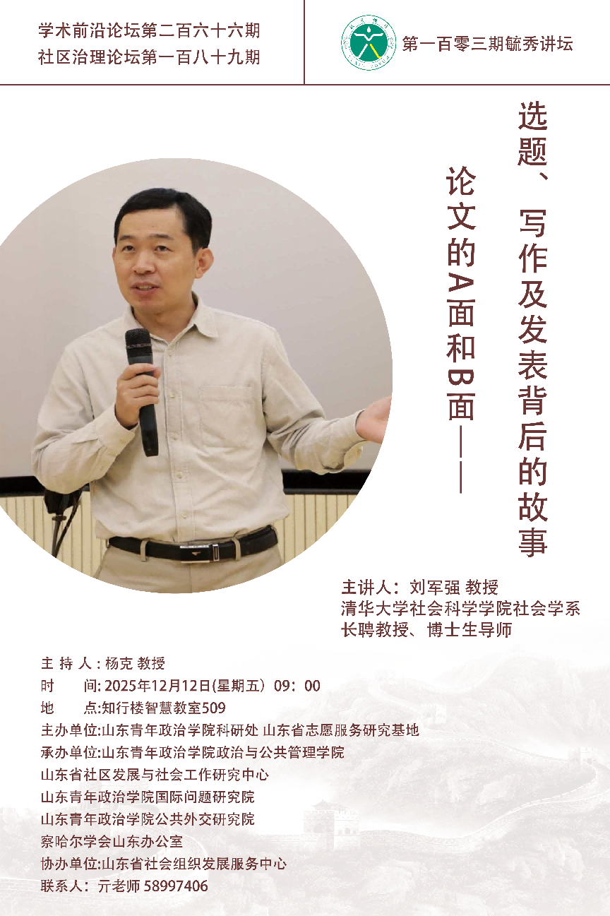 题 目:论文的A面和B面——选题、写作及发表背后的故事