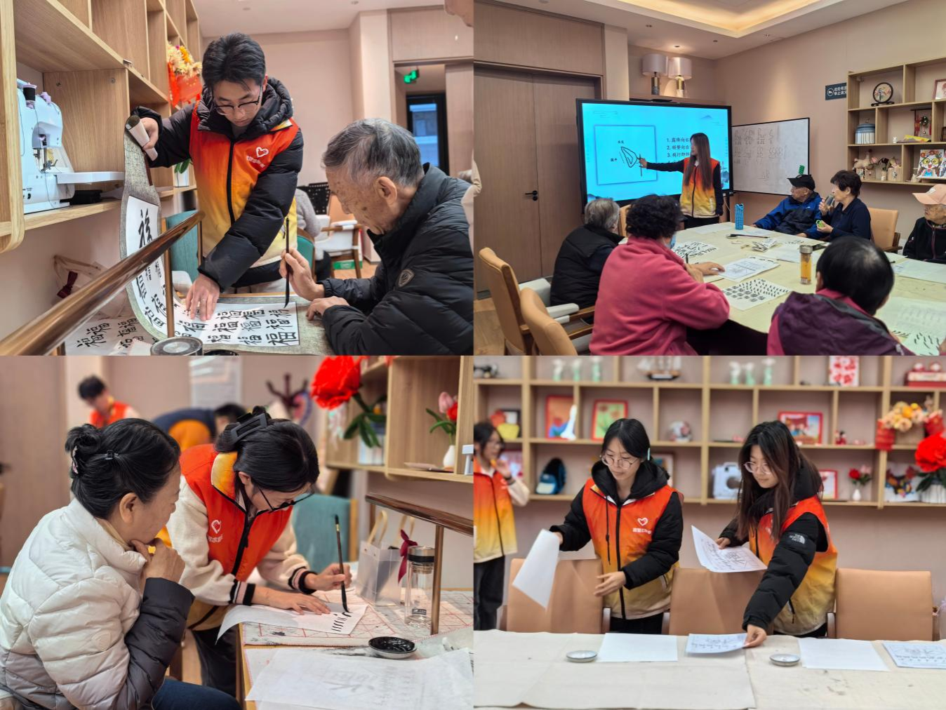 为丰富社区老年人精神文化生活,弘扬敬老爱老传统美德,传承中华优秀传统文化,12月12日,政治与公共管理学院启明星青年志愿服务社联合传统美韵协会走进济南市历下区槿椿颐养中心,开展“笔润时光,福聚颐养”书法体验活动,带领老人们亲身感受书法的魅力。