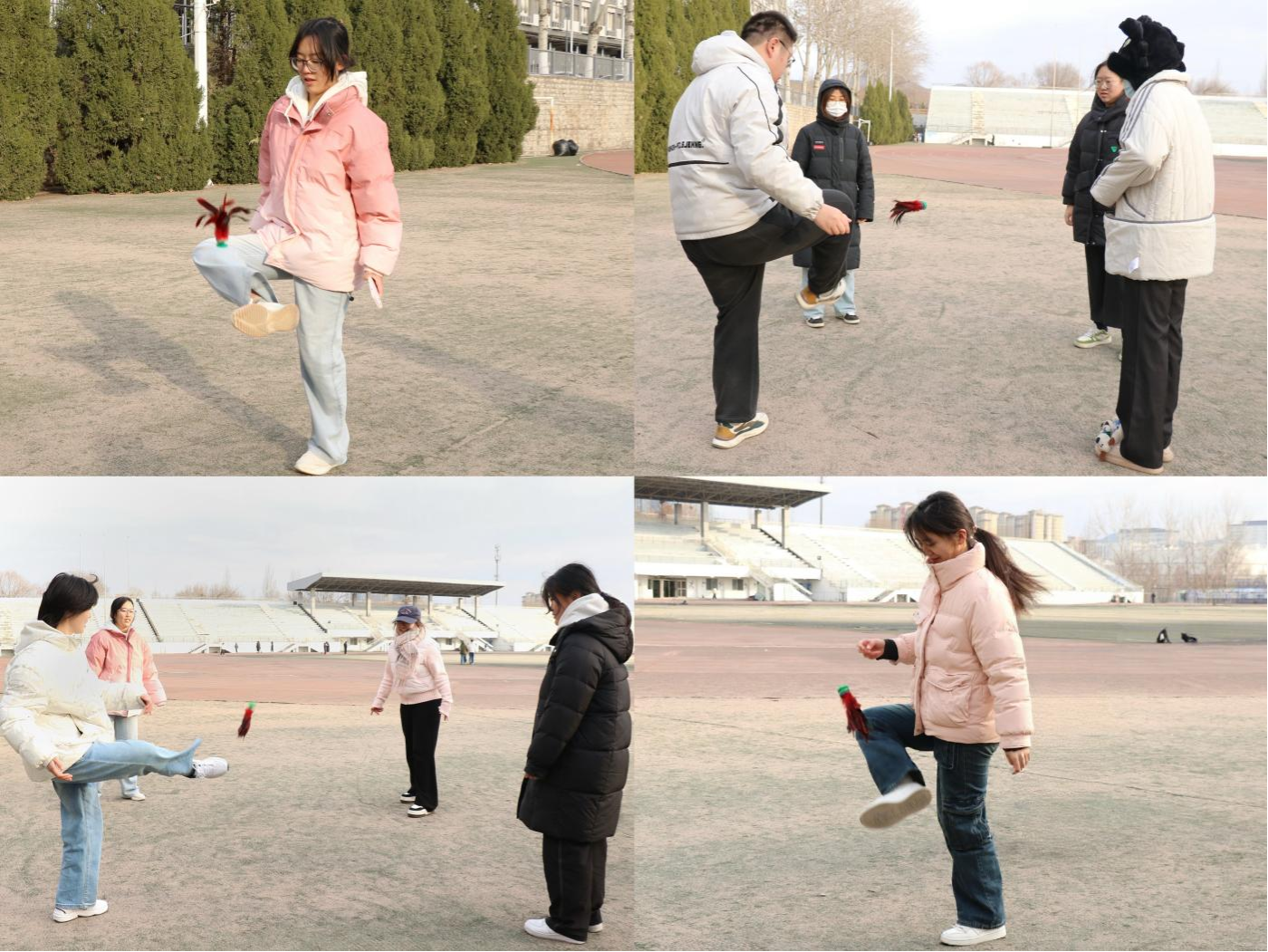 本次活动由“踢毽子”和“诗词飞花令”两部分组成。踢毽子赛事采用积分制,经抽签确定上场顺序,在双场地同步开展个人赛、三人接力赛与四人围踢赛。从个人赛的稳扎稳打,到接力赛的默契配合,再到围踢赛的团结协作,选手们身姿灵动,技法娴熟,既将传统民俗运动的灵动之美展现得淋漓尽致,更是青春活力的尽情释放与团队精神的生动体现。