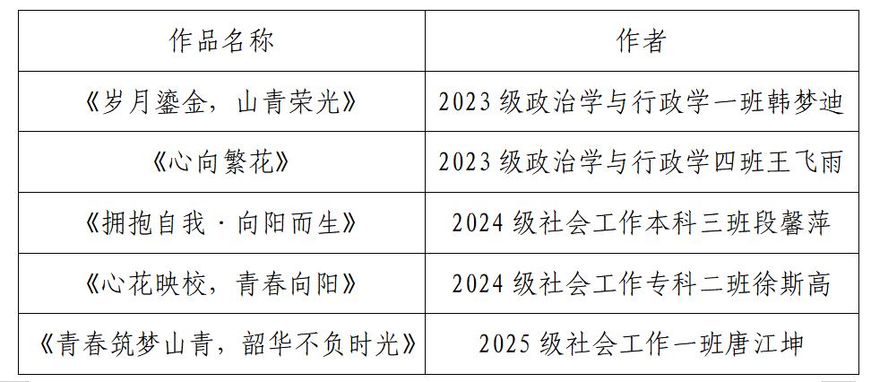 以“心灵花朵”为创作灵感,以视觉艺术为情感纽带,政管学子用画笔勾勒出盎然山青、逐梦韶华。“心花向阳·青春山青”——政治与公共管理学院海报设计大赛圆满落幕。自比赛开始以来,学院学子充分发挥创意与想象,将“爱校荣校”从口号转化为真挚的情感,通过斑斓色彩与灵动构图,绘就一幅幅动人的青春画卷。每一抹色彩的精心调配,每一次构图的反复推敲,最终凝聚为眼前这些充满生命力的海报作品。