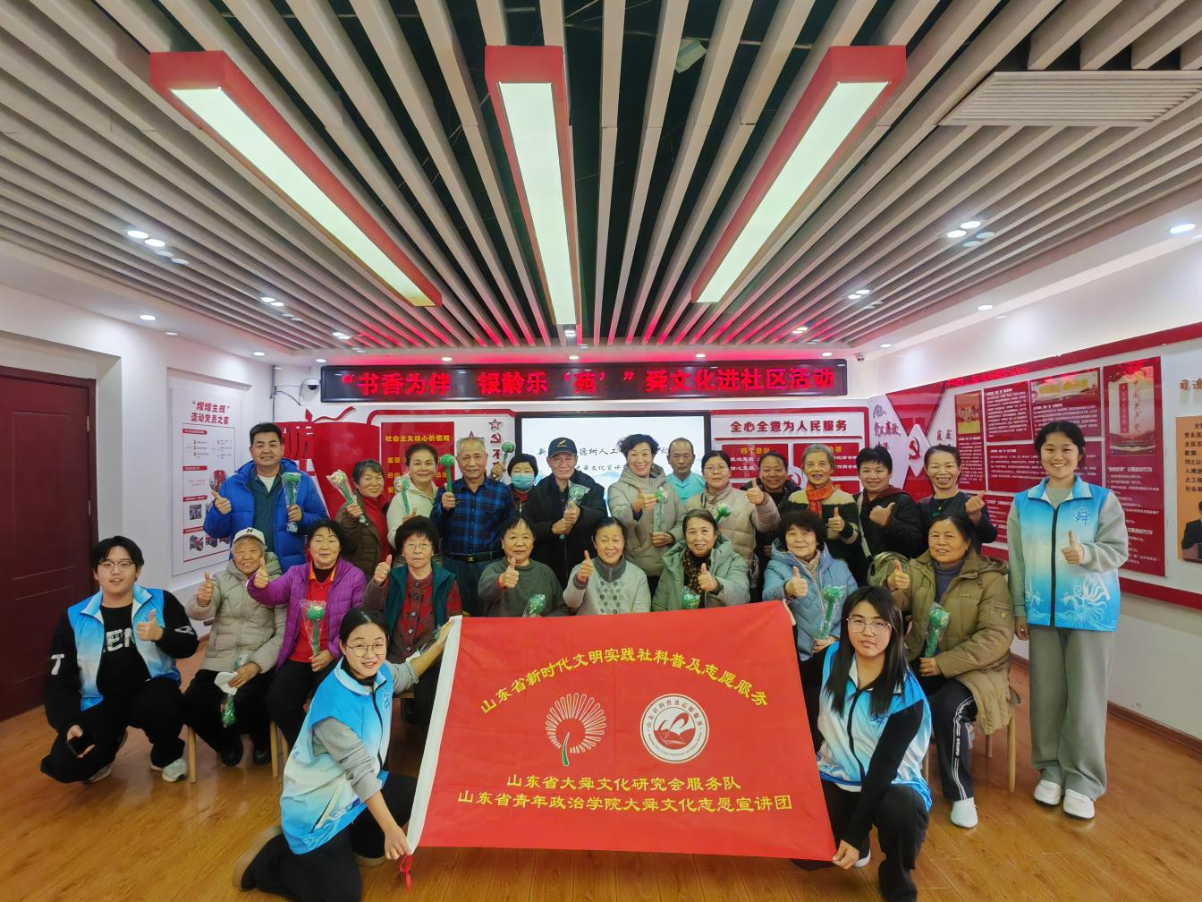 为探索以文化传承赋能基层社区治理的有效路径,激活传统文化的当代价值,丰富社区精神文化生活,让千年舜风拂润社区长者心田,11月20日至12月16日,山东青年政治学院大舜文化志愿宣讲团积极响应济南市“书香为伴 银龄乐‘苑’”进社区系列活动号召,先后走进恒大名都、万象新天、名辉豪庭等十个社区,以“文化宣讲+趣味互动”的创新形式,将古老的舜文化转化为构建和谐社区、增进邻里认同的生动实践,为社区的老年居民带来了一场场知识与欢乐并存的文化盛宴。