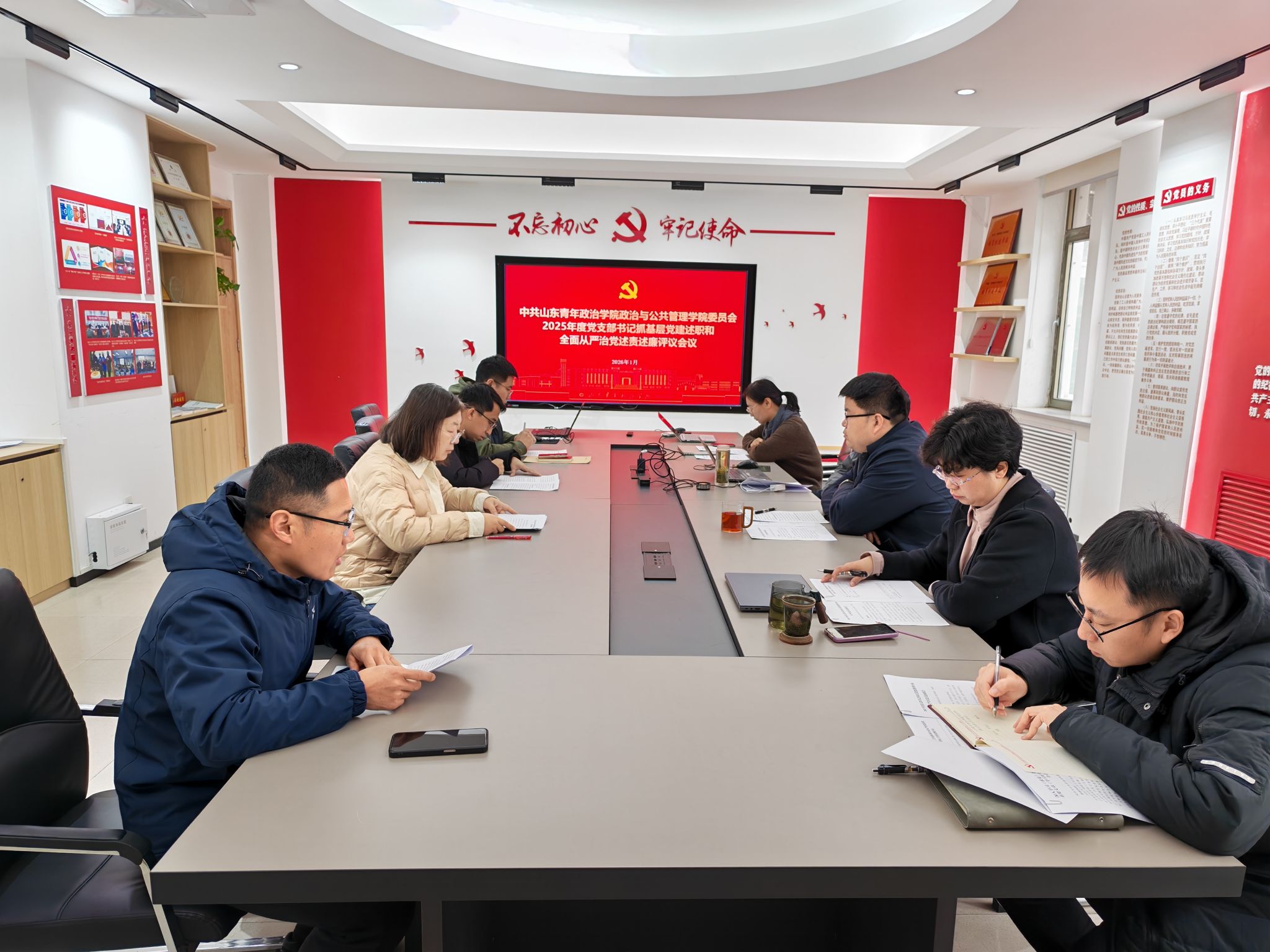 为深入贯彻落实新时代党的建设总要求,全面总结检视2025年度基层党组织工作,进一步提升党支部标准化规范化建设水平,充分发挥党支部战斗堡垒作用,1月19日,政治与公共管理学院召开2025年度党支部书记抓基层党建述职和全面从严治党述责述廉评议会议。学院党委班子成员、各党支部书记参加会议,学院党委副书记庞翠主持会议。