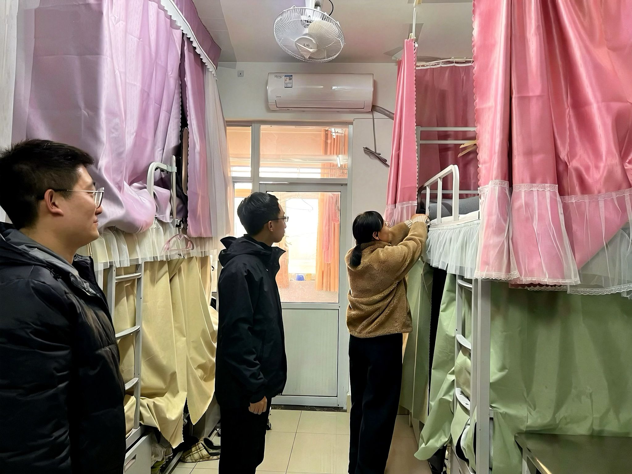 在排查过程中,辅导员们逐一检查宿舍门窗是否锁闭严实,严防盗窃事件发生;重点核查电源总闸、水源开关是否彻底关闭,严防因电路老化、水管漏水等引发假期安全事故。同时,检查组还重点清理了宿舍内遗留的易燃杂物,检查是否有违规大功率电器遗漏,确保“人走电断、人走门锁”,杜绝一切安全隐患。