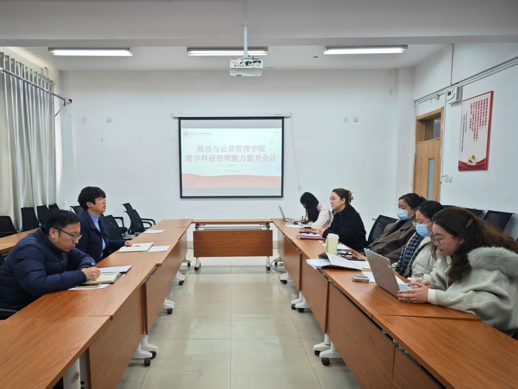 为进一步夯实教学管理基础、提升服务保障效能,助力学院申硕攻坚与高质量发展,3月13日,政治与公共管理学院召开教学管理能力提升专题会议。会议由学院副院长卢鹏程主持,院长杨克、副院长张剑出席,教学科研管理办公室全体工作人员参加。