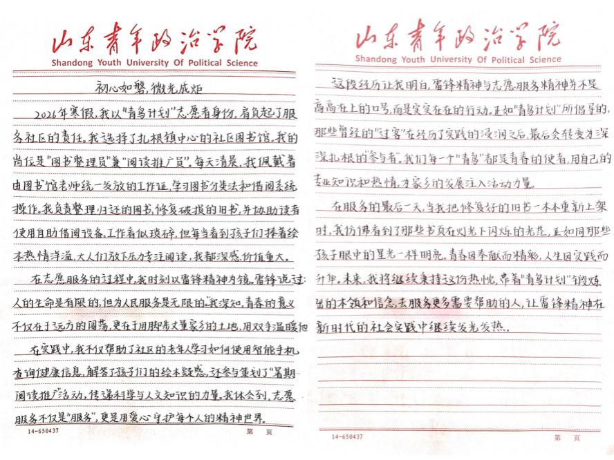 本次主题征文活动为同学们搭建了展示文学素养的平台,更以文字激发了青年学子学习与践行雷锋精神的热情,引导大家将奉献助人精神融入日常。活动汇聚校园向上向善的青春力量,营造出传承红色基因、弘扬雷锋精神的良好氛围。未来,山青政论学社将坚持立德树人,紧扣时代主题,持续开展形式多样的德育实践与志愿服务,以实际行动传承雷锋精神,引导青年学子坚定信念、担当使命,让雷锋精神在新时代焕发更璀璨的光芒。