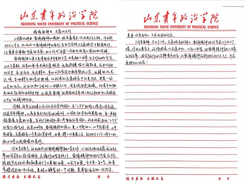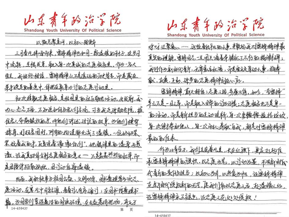 为弘扬雷锋精神,传承中华民族优秀传统美德,3月3日—3月14日,政治与公共管理学院山青政论学社顺利开展“情暖雷锋日,志愿我先行”主题征文活动。