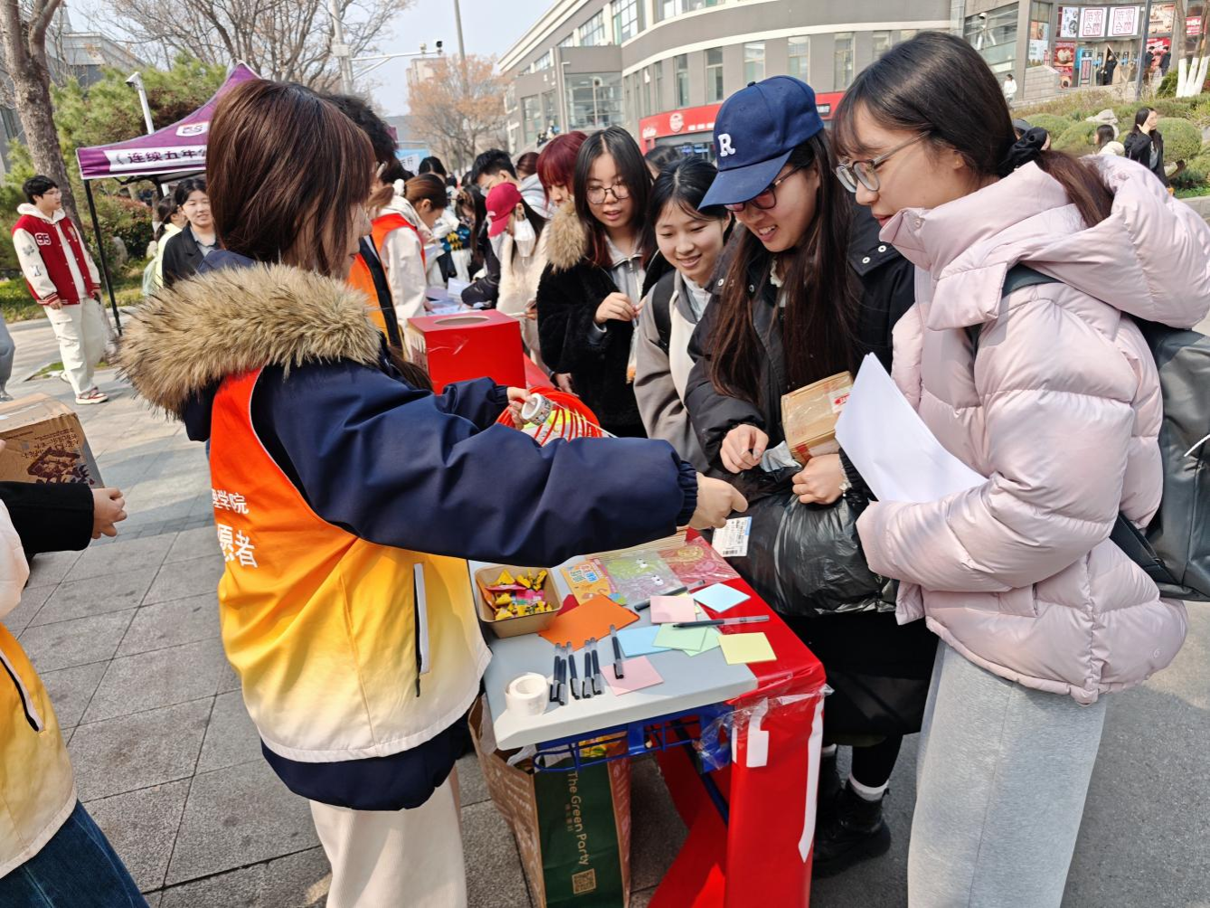 本次活动设置打卡立牌拍照区、心愿便签祝福墙、粘粘球知识问答、接力问答微视频记录等丰富多样的互动环节,吸引了来往学生2000余人参与。在“我为社工打CALL”拍照区,同学们手持主题手举牌合影留念,用一张张定格的笑脸表达对社工的支持与认同,展现了青春与公益同行的美好姿态;在“心愿便签·社工祝福墙”前,同学们认真写下的真挚话语与期待,将五彩斑斓的便利贴汇聚成一面温暖的爱心之墙,凝聚了学子们对社工事业的情感支持。“粘粘球知识问答”以活泼的趣味游戏形式,帮助同学们在互动中轻松学习社工专业知识,实现了寓教于乐。而“接力问答微视频记录”则吸引同学们组队参与,在你问我答、接力传递的轻松氛围中,完成了一次社工理念的生动传递与共鸣。活动现场气氛热烈,同学们在沉浸式体验中走近社工、了解社工,不仅收获了知识与乐趣,更在潜移默化中深化了对“助人自助”专业价值的理解与认同。