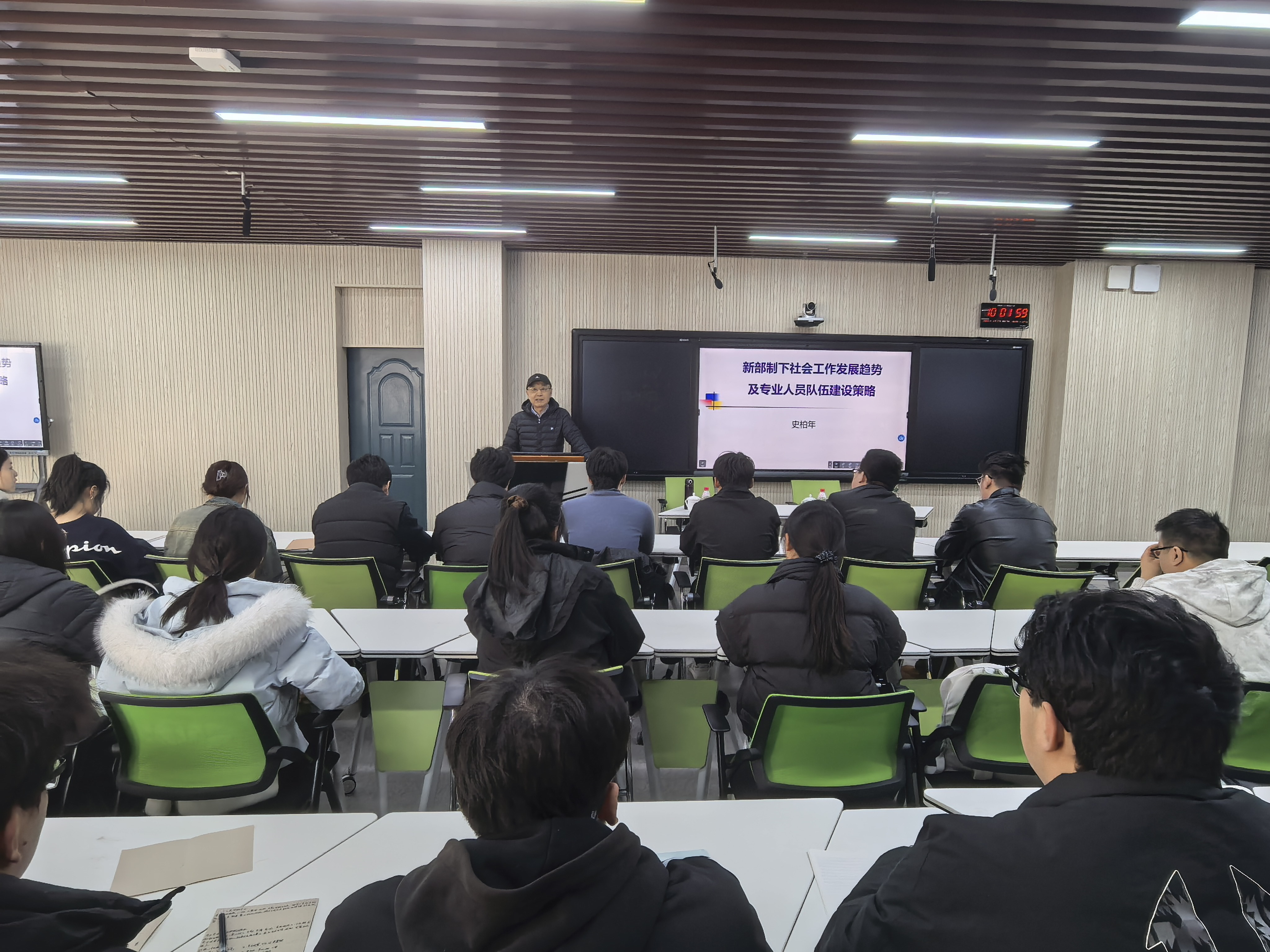 讲座中,史柏年教授结合《意见》中关于社会工作专业人员队伍建设的总体要求,深入解读中央社会工作部组建的时代背景与职能定位,围绕专业与党的社会工作的内在关系、队伍建设机制、重点服务领域及关注人群等关键方向,提出系统性建设策略,为学院落实《意见》要求、优化人才培养体系提供了专业指导。此次讲座精准对接《意见》中“加快社会工作专业人员培养、提升队伍专业素质”的要求,为学院培育高素质、专业化社会工作人才搭建了高水平学术交流平台,有力推动学科理论创新与实践应用的深度融合。