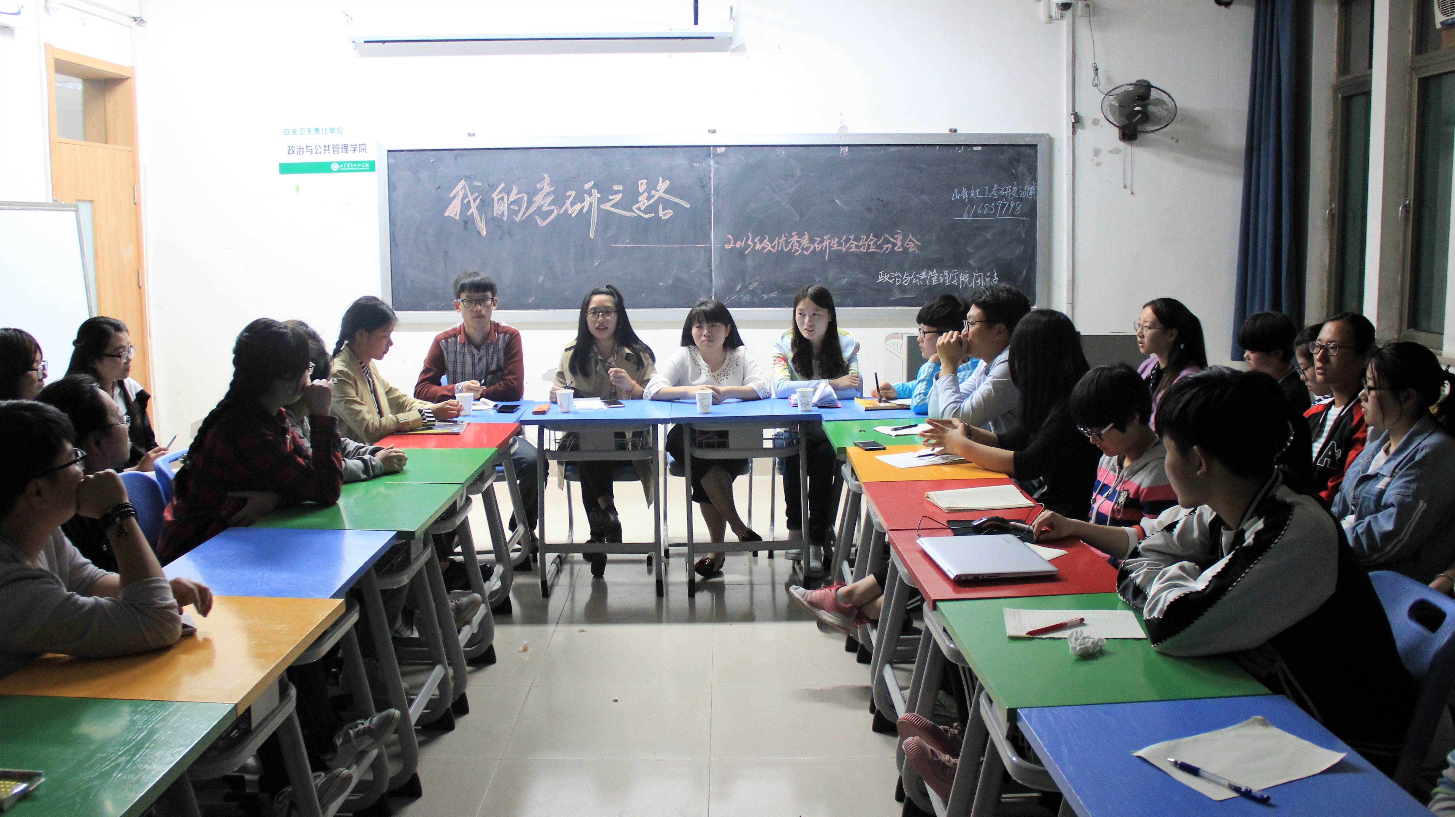 为带动学院学风建设,营造良好的学习氛围,发挥学习优秀学生的示范带动作用,引导广大学生主动向榜样看齐,4月18日晚,政治与公共管理学院于文外楼101、103教室成功举办以“我的考研之路”为主题的2013级优秀考研生经验分享会。学院七位优秀考研生受邀与同学们分享考研经验,2014级、2015级、2016级学生代表参与本次交流会。