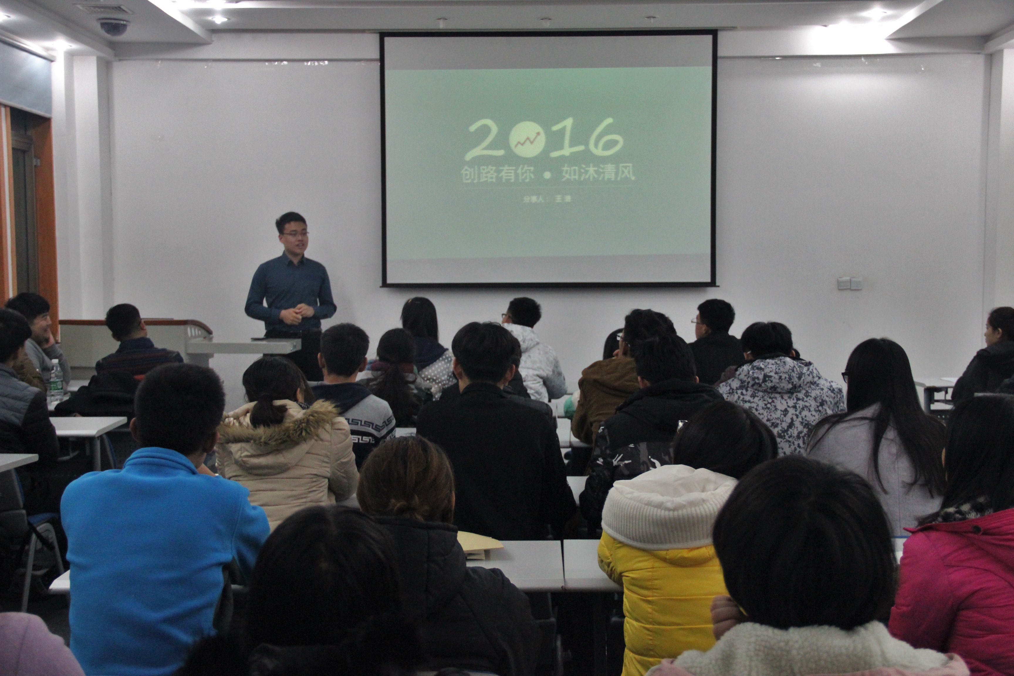 12月5日晚,政治与公共管理学院于文外楼顺利举办“创路有你,如沐清风”就业创业经验分享交流会。山东期盛金融集团济南高新区经理王浩、校学生会和各学院就业创业部负责人及学生代表参加了此次交流会。会议由刘孟杰主持。
