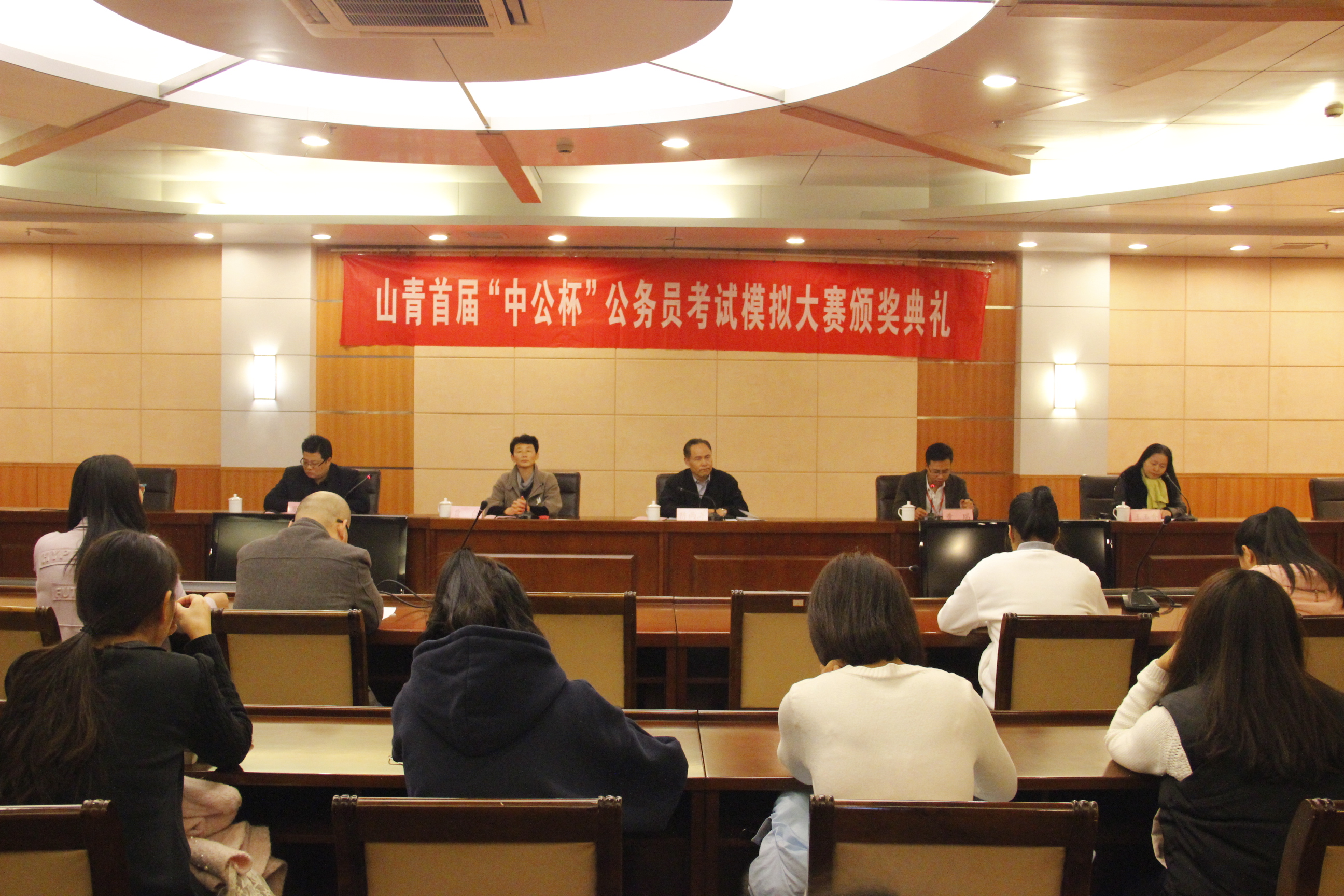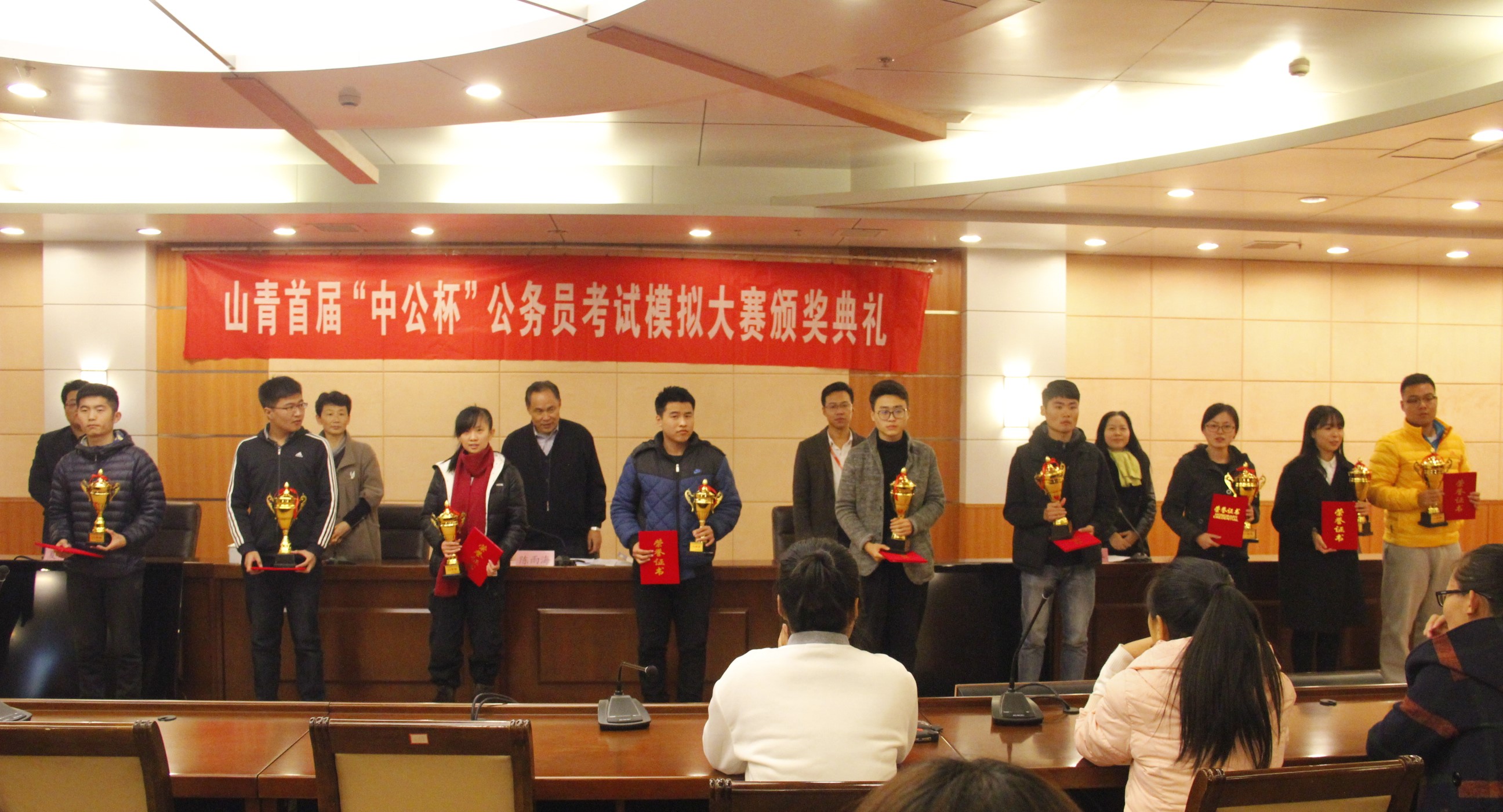 本次公务员考试模拟大赛由中公教育集团赞助,学校大学生创业实体济南真创教育咨询有限公司具体承办。据悉,这是济南真创教育咨询有限公司正式成立以来举办的首次大型赛事。在教务处和各学院的支持下,赛事吸引了来自政治与公共管理学院、会计学院、信息工程学院、文化传播学院、经济管理等7个学院的421名在校生参加,参赛学生广泛分布在从大一到大四的各个年级。赛事组委会根据比赛规则对成绩优异的姜效尉等31名同学进行了表彰,分别授予一、二三等奖和奖杯,向政治与公共管理学院张恩韶等4名指导教师和会计学院等3个优秀组织单位颁发了奖励证书。