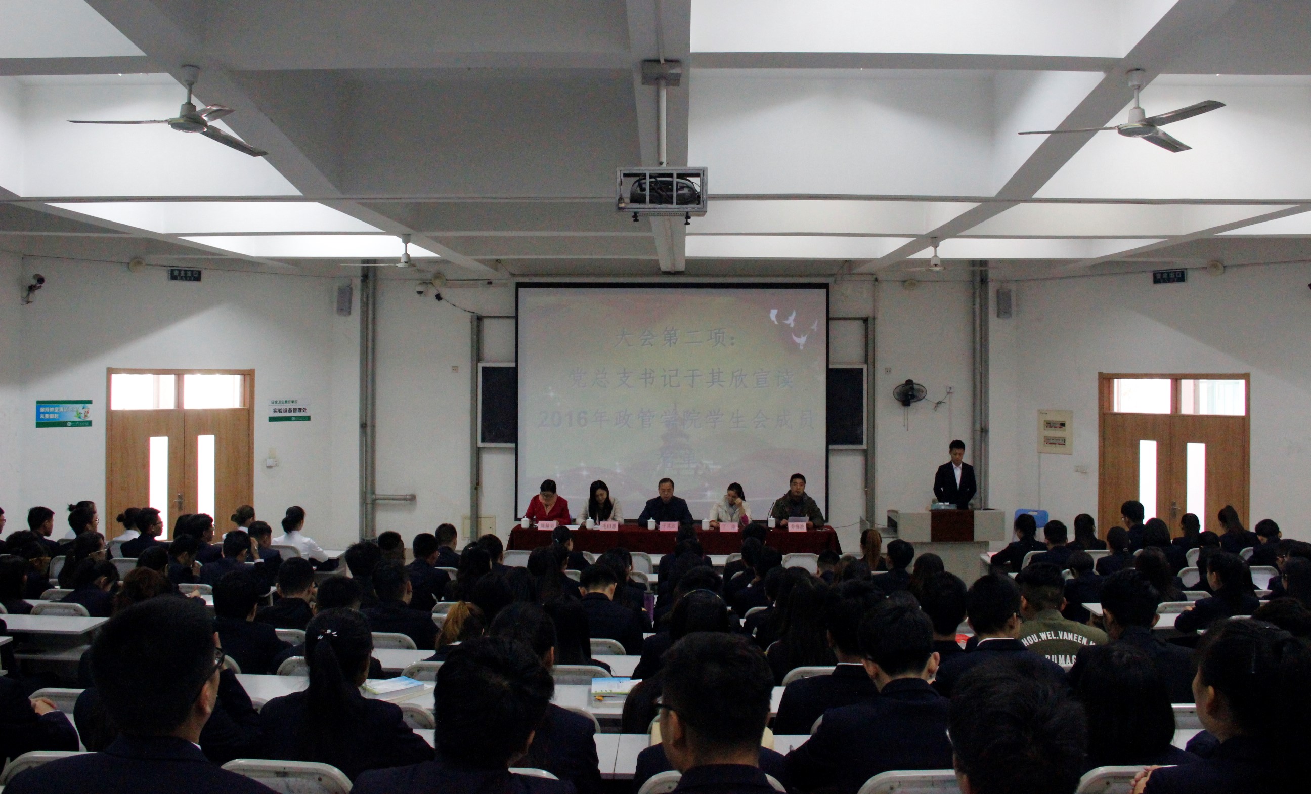 11月16日中午,政治与公共管理学院2016年学生会成立大会于电教楼101室顺利召开。政治与公共管理学院党总支书记于其欣、副书记丁萍、团总支书记乔海波、辅导员毛田惠、陈越男,政管学院上一届学生会主席杨彬和政管学院本届学生会全体成员参加会议。大会由乔海波主持。
