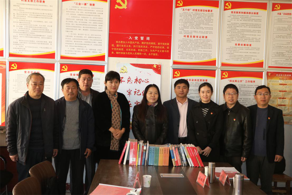 为深入推进“不忘初心、牢记使命”主题教育,切实助力基层农村党建工作的完善与发展,11月13日,山东省社区发展与社会工作研究中心理事长王玉香、党支部书记张剑、政治与公共管理学院党总支书记丁萍、“双百扶贫”驻村社工宋婷等一行赴临清市尚店镇祝楼村走访调研,慰问贫困户,开展“校地社”党建联建共建暨“志愿服务·党徽闪耀”主题党日活动,推动学校、研究中心、农村党支部深入合作交流,努力构建“校地社”三方党建共建模式。尚店镇党委副书记徐秀美、尚店镇司洼社区党总支书记王连国、尚店镇党委委员党建办副主任酆百义、尚店镇祝楼村党支部书记祝维臣、省派第一书记张庆等参加推进会。