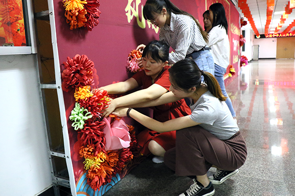 正青春团支部工作研究会是政管学院团总支创新工作形式,依托各团支部委员组建的,协助团总支开展基层团建、支部活动管理等工作的新型学生组织。在国庆来临之际,研究会的20余名同学们策划发起了“我为国旗添光彩”纸艺折花活动,同学们利用业余时间,自己绘制图样、设计款式,购买材料、分工制作,先后以手工折纸的方式制作了300余朵“鲜花”,粘贴在敏行楼一楼的主背景墙、社工实验室,用最朴素的方式表达着基层学生团干部对祖国的祝福。