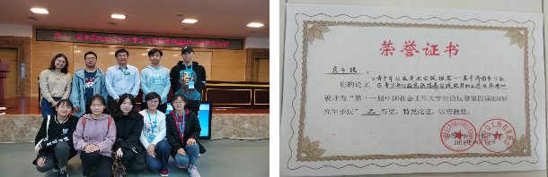 经学院推荐,论坛专家匿名评审等环节,政治与公共管理学院社会工作专业2016级本科生房子琪、刘明鑫、朱鸿基、杨霄和2017级本科生刘彧、卢妹玫、袁思方、梁乙晴共8名同学入围并受邀前往重庆参加论坛现场交流。其中,由王俊燕老师、秦小峰博士指导房子琪同学撰写的论文《青少年公益意识培养实践探究——基于济南市S社区青少年公益意识培养实践项目的反身性思考》荣获二等奖,卢妹玫同学撰写的论文《社会工作专业领域拓展的实践与经验分析——基于S省J市志愿创新服务项目“公益银行”》、杨霄同学撰写的论文《新时代背景下本科阶段社会工作人才培养专精化发展现状及路径研究——以山东省济南市S高校为例》、刘彧同学撰写的论文《社会工作与社会政策的协同式发展空间及前景探讨——基于社区工作实务发展现状》、袁思方同学撰写的论文《社会工作学生专业实习学生满意度研究——以山东省某高校为例》分获三等奖,并在各分论坛主题发言。另外,刘明鑫、朱鸿基和梁乙晴3名同学获得入选奖并在分论坛主题发言。