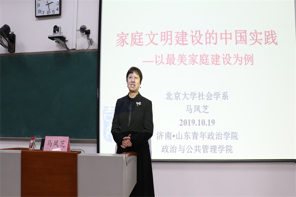 近日,由科研处主办、政治与公共管理学院承办的“庆祝新中国成立70周年”学术活动月之高端学术论坛(第十一期)暨第三十五期社区治理论坛于我校笃行楼102教室举行。北京大学社会学系博士生导师马凤芝教授应邀为我校师生带来题为“家庭文明建设的中国实践——以最美家庭建设为例”的专题报告。本次报告会由政管学院社会工作教研室主任王俊燕主持,政管学院社会工作专业师生共同参加。