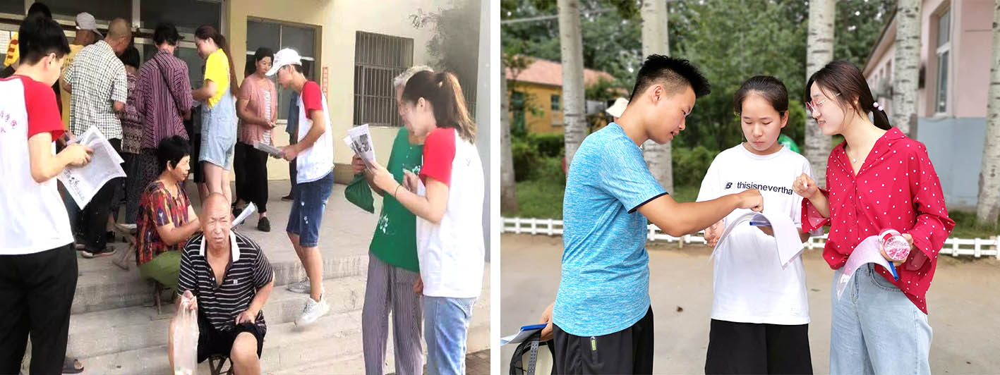 “善治视角下社区生活垃圾分类处理现状及对策研究”、“乡村振兴战略下新农村社区垃圾分类状况”、“青春韵绿”三支调研团队立足社区垃圾处理,在日照东港区、枣庄市中区、潍坊寿光、青州等地走访社区居民、物业管理、楼宇保洁、居委会负责人等相关人员,从配套设施、分类意识、分类收集、分类运输、垃圾一体化处理等角度,通过问卷调查、入户走访、分发垃圾分类倡议书等方式展开调查研究。调研队还在社区广泛宣传普及干湿垃圾分类知识,向居民宣传垃圾减量化、资源化、无害化以及做好垃圾分类的紧迫性、重要性,积极协助社区推进垃圾自觉自治,提高社区居民生活质量。
