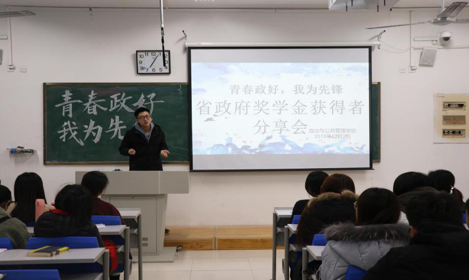 “学所以益才也,砺所以致刃也”,学院重视发挥朋辈榜样的示范引领作用,通过微信、宣传栏、分享交流会等线上线下多种媒介和形式对国家奖学金及省政府奖学金获得者等优秀学子的成果事迹进行了宣传推广,化榜样精神为学习力量,引领政管学子向身边榜样看齐。一是推出“榜样寄语”,收集整理国家奖学金及省政府奖学金获得者代表照片、信息以及寄语,在敏行楼大厅以海报形式进行宣传展示;二是开展“榜样说”分享交流活动,邀请优秀学生与同学们进行互动交流,分享学习经验和方法;三是利用山青政管之家微信公众平台推送“创优良学风,展学子风采”系列推文,通过身边榜样,汇聚前行力量,在润物无声中感染每一位学生。