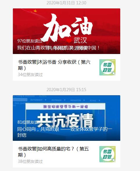 疫情当前,学院积极宣传贯彻疫情防控工作的官方文件精神和工作措施,通过“山青政管之家”微信公众号、微博公众号发布《共抗疫情——致全体政管学子的一封信》、《致政管学院全体学生党员、团学干部的“防疫”倡议书》、《我们在山青政管,祝福武汉、祝福中国!》等多篇推文,积极转发官方网站疫情防控相关信息,组织同学们在线学习“防疫健康教育知识课”、参加疫情防控特别节目知识问答活动,宣传普及新型冠状病毒肺炎的预防建议、辟谣信息、应对策略、急救知识等,及时劝导他人不信谣、不传谣,向师生传递学院的关心和牵挂,增强师生战胜疫情的意识和信心,维护生命健康和安全。
