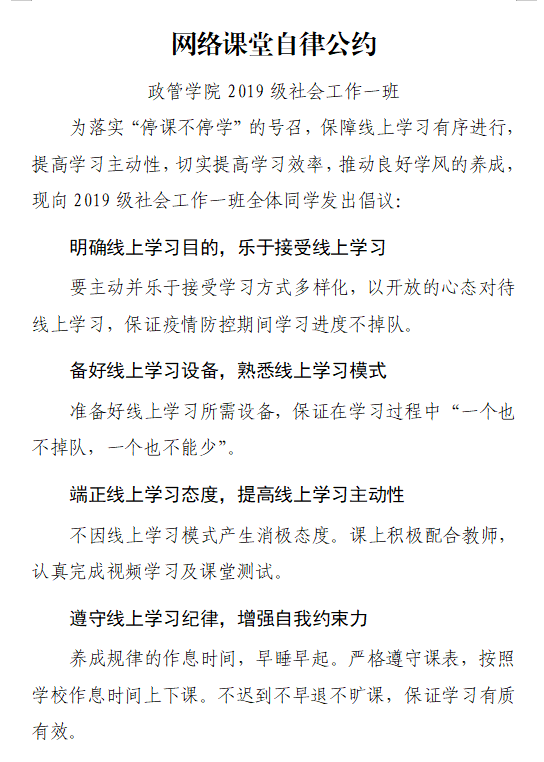 学院积极动员广大团员、团干部,在各团支部组织团员青年共同学习习近平总书记关于新冠肺炎疫情防控的重要讲话精神、共上“思政大课”、学习学校和学院关于疫情防控工作和2020年春季教学工作的要求和安排、讨论制定网络课堂自律公约、开展“如何上好网络课”大讨论、做好网络课堂秩序维护,达到了线上学习效果好、内容全、质量高的目的。