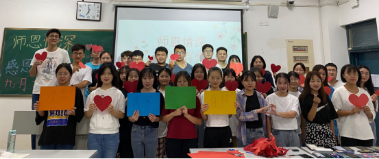 政管学院各基层团支部9月8日围绕“丹心育桃李 金秋颂师恩”这一主题开展了团日活动。团员青年们在活动中积极讨论祝福卡片制作方案,征集祝福语句,利用课余时间制作精美卡片,在教师节当天,走进各教研室、各办公室,将自制卡片赠予政管学院每一位老师。