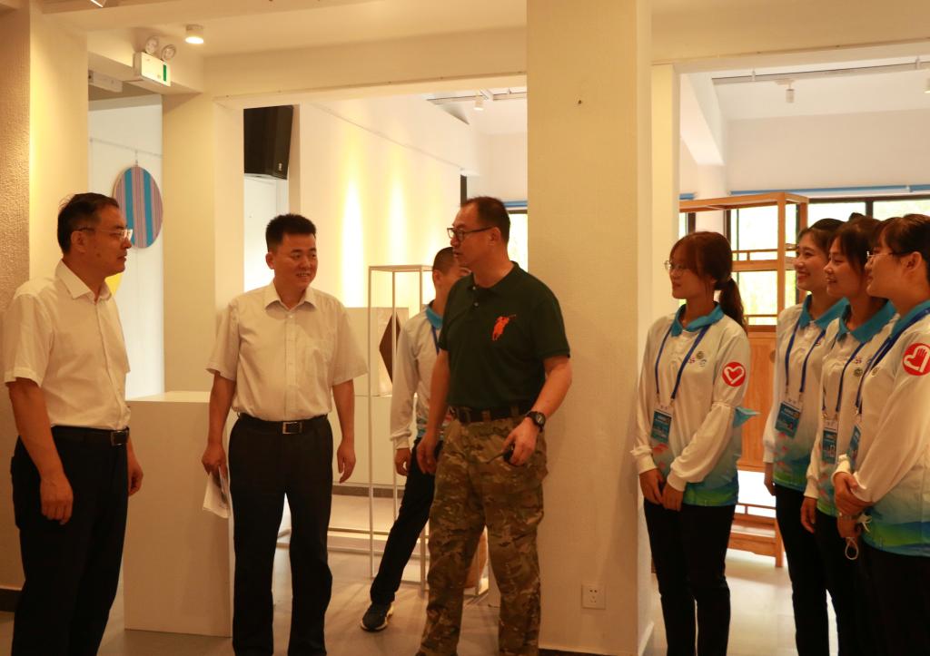 黄晓广书记、高峰书记与志愿者亲切交流,询问志愿者们的在岗时间、岗位职责、工作进展等情况,对他们的志愿服务工作给予鼓励。政管学院2018级社会工作专业的胡雪玉同学谈到:“团市委领导和学校领导来看望志愿者,我们感到十分温暖。这两天我听到了很多非遗传承人的故事,也更加感受到本次旅发大会的重要意义,作为山青学子,参与志愿服务、传承传统文化,我们责无旁贷。”