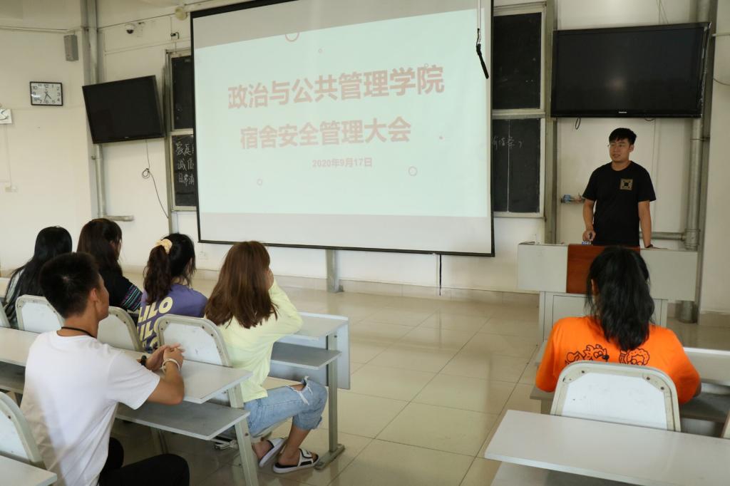 为加强疫情期间学生宿舍安全管理,进一步提高学生的安全防范意识,营造安全和谐的宿舍环境,9月17日下午,政治与公共管理学院召开学生宿舍安全管理工作会议。会议由辅导员李岳松主持,政管学院全体宿舍长参加了会议。