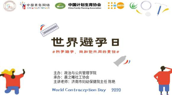 为普及科学避孕节育知识,切实维护青少年的生殖健康,9月27日,由山东青年政治学院政治与公共管理学院主办,晨之曦社工协会承办的“9.26世界避孕日”线上主题讲座如期开展。本次线上讲座主题为“科学避孕·她和他共同的责任”,济南市妇幼保健院陈艳主任应邀出席,政治与公共管理学院300名学生共同参与此次讲座。