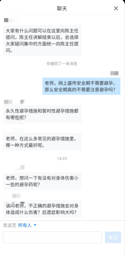 讲座伊始,陈艳主任向同学们介绍了基本的生理知识,并结合丰富的临床经验和案例,从医学的角度将避孕及其相关知识进行了详细讲解,呼吁每位大学生应对自己的性行为与生殖健康做出负责任的选择,减少不安全性行为和非意愿妊娠的发生,在了解科学避孕的同时,增强自我保护意识,提高生殖健康水平。此外,陈艳主任扩展讲座内容,讲解了性病和艾滋病的相关知识,倡导在校大学生要正确认知安全有效避孕的重要性,树立科学避孕的青春健康理念。