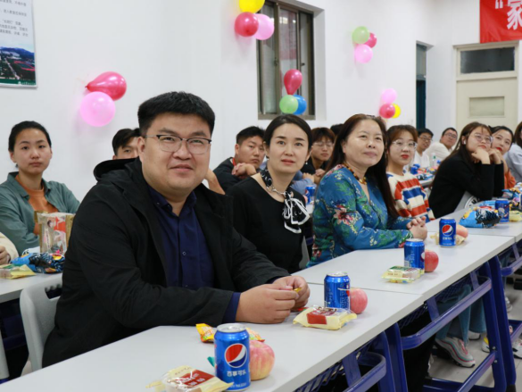 老师们与同学们热情交流,给大家送上中秋月饼、水果和节日的祝福。学生团支部精心准备了丰富的节目,同学们合唱《我和我的祖国》,用歌声来表达对伟大祖国的热爱与歌颂。通过古诗接龙感悟家国文化,“萝卜蹲”、“开火车”“泡泡糖”等团建小游戏更是将活动气氛推向高潮。