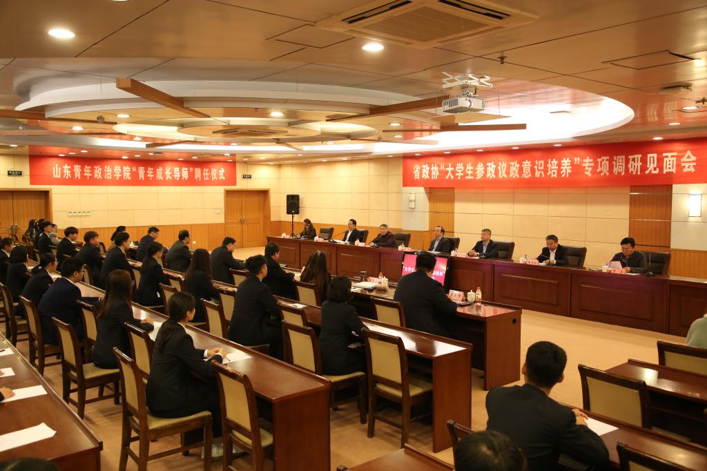 为了解高校大学生参政议政意识培养情况,发挥人民政协重要作用,助力高校应用型人才培养,11月10日下午,山东省政协副秘书长、办公厅主任燕翔率调研组来到山东青年政治学院开展“大学生参政议政意识培养”专项调研。省政协常委李连祥,省政协委员林擘、罗齐、谭汗青,省政协办公厅综合处处长郭增加,省政协提案委员会办公室主任李东彪参加调研。学校党委书记鹿林,党委副书记、院长张书明,副院长刘涛,党委统战部部长张杰,党委学生工作部部长石瑞宝,政治与公共管理学院院长王玉香等陪同调研并参加相关活动。