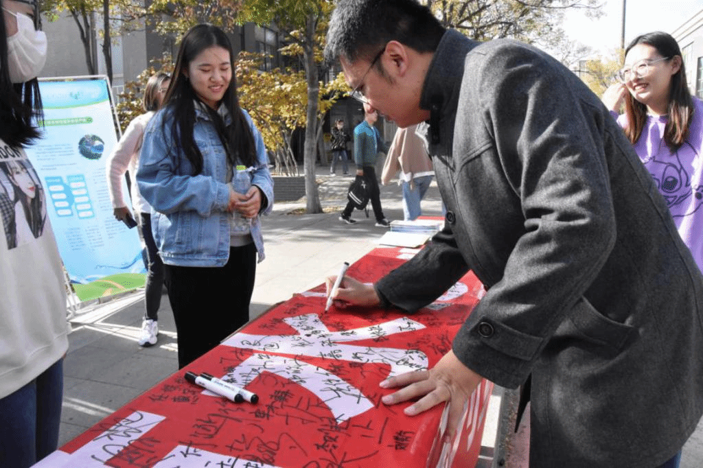 活动开始前,公共管理协会志愿者提前进行场地布置,悬挂横幅、摆放节水宣传展板,期间吸引了部分学生围观了解。本次校内宣传活动主要设置了节水横幅签字,展板合影留念和采访交流三项活动,用多种形式让同学们深刻认识到了爱水节水的重要性。协会指导教师沙治平到场指导。沙老师呼吁大家积极响应国家号召,共同建设资源节约型、环境友好型社会,确切落实“金山银山不如绿水青山”的理念,并做到由己及人,积极带动身边同学参与到节水行动中。在活动采访过程中,许多同学就身边的水资源浪费现象发表了自己的看法,为节约用水,爱护泉城献计献策。同时表达了从我做起、从小事做起,节约用水,爱护环境的决心。