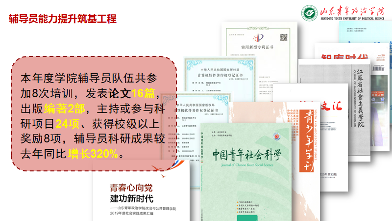 接下来,学院将以辅导员能力提升筑基工程为抓手,以提升辅导员职业能力为主线,继续发挥辅导员在大学生思想政治教育方面的关键作用,促进辅导员队伍的专业化、职业化、高水平建设,为青年政治人才的培养贡献力量。