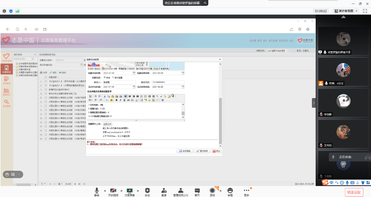 2020年暑期期间,学院在首批公益合伙人计划中初步建立了系统、稳定的工作模式,同时也储备了专业人员、技术等要素,今年寒假,学院志愿者结合自身经验及“线上+线下”需求调研的大数据分析,继续保持全市青年志愿服务岗位需求精准对接。基于团市委、协会广泛发动与支持,28名项目团队成员累计征集2195个寒假志愿服务岗,共覆盖社区服务、环境保护、文化宣传、助老助残、社会实践等7个领域。服务期间,项目团队借助“志愿汇APP平台+金数据系统”实现志愿服务的全程信息化管理。此外,项目团队立足“需求为先、以人为本”思想,建立大学生志愿者、岗位负责人、高中生志愿者等群,以“N”条沟通渠道落实多重人性化保障,借此构建“N+1”线上志愿服务管理体系。