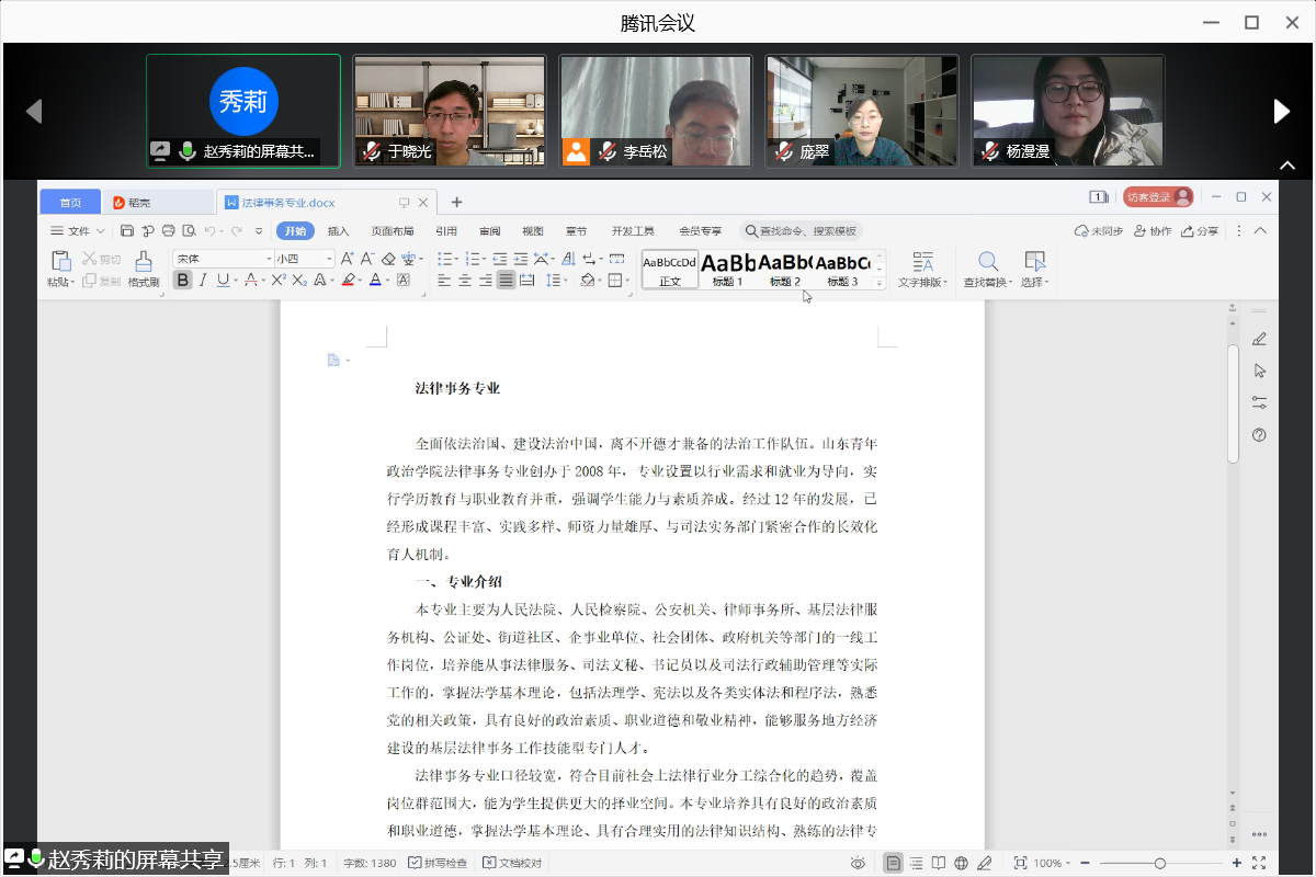 本次学习邀请政治与公共管理学院法律事务教研室主任赵秀莉老师参加,赵秀莉结合《法律事务专业人才培养方案》讲解了法律事务专业的培养目标、毕业要求、课程设置、教学进程和课程安排等内容。她指出,法律事务专业应用性较强,既有完整系统的法学基础理论和基础知识,又在课程设置上体现职业教育的实用性特点,将意志培养、职业技能和职业素质贯穿始终,以适应法律行业分工综合化的趋势,努力将学生培养成 “政治观念强、学习能力精、纪律作风正”的法律专业专门人才,为学生提供更大的择业空间。