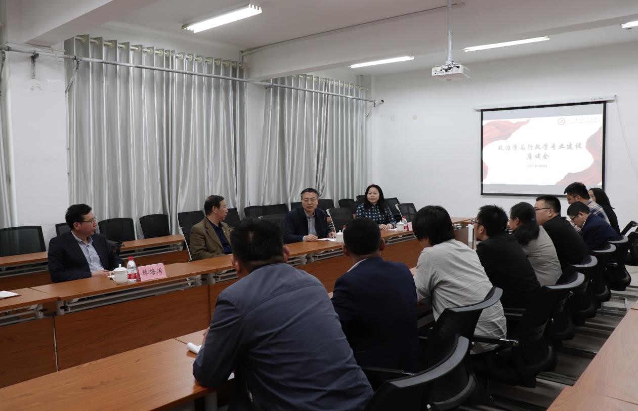 座谈中,高峰介绍了学校的发展历史与办学定位、政管学院的人才培养与专业建设、政治学与行政学专业的优势与特色。他指出,作为彰显学校青年政治特色的典型专业,政治学与行政学专业面向全校开设青年领导力学位班,以政治学与行政学专业+领导力学位班的形式,培养青年学子的参政意识和参政能力,服务于学校的“4+1”青年政治人才培养体系。他强调,学科专业建设离不开高屋建瓴的指导,老师们要把握住机会,多向于教授请教,明确政治学与行政学专业未来发展的方向与思路。
