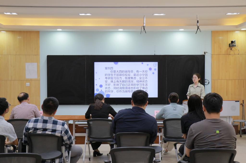 本次初赛在前期完成笔试阶段之后,由生情熟知和案例分析两个环节构成。生情熟知环节,是辅导员对自己学生信息的熟知情况。案例分析环节,参赛老师随机抽取案例,围绕案例中的问题本质、解决思路、实施办法及相关启示进行阐述。参赛老师思维敏捷、思路清晰、灵活应对,充分展示了学院辅导员积极向上的精神面貌和全面的综合素养。