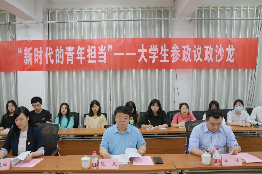 为引导青年学生关注社会热点,培养参政议政意识,提高参政议政能力,6月1日下午,由政治与公共管理学院主办,济南山青社会工作服务中心协办的“新时代的青年担当”大学生参政议政沙龙在敏行楼104室举行。省政协常委、世纪金榜集团股份有限公司董事长张泉一行受邀出席活动,学院党总支副书记王正坤、辅导员杨漫漫及《大学生参政议政能力提升》公选课的部分学生参加活动。