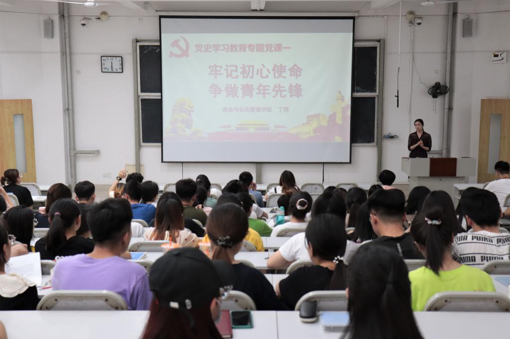为全面落实学校党史学习教育推进会精神,推动党史学习教育走深走实。6月9日下午,政治与公共管理学院党总支书记丁萍以《牢记初心使命 争做青年先锋》为题,为学生党员及入党积极分子讲授党史学习教育专题党课。