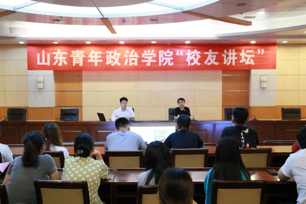 为充分发挥优秀校友的榜样示范作用,引导广大青年学生树立正确的世界观、人生观、价值观,6月21日下午,由学校校友联络办公室主办、政治与公共管理学院承办的2021年“校友讲坛”第五期在学术会议厅举行。学校2014届社会工作专业毕业生、山东财经大学经济学院辅导员朱海林应邀出席,以《再忆山青,时光不老》为题做专题报告。活动由政治与公共管理学院辅导员于晓光主持。