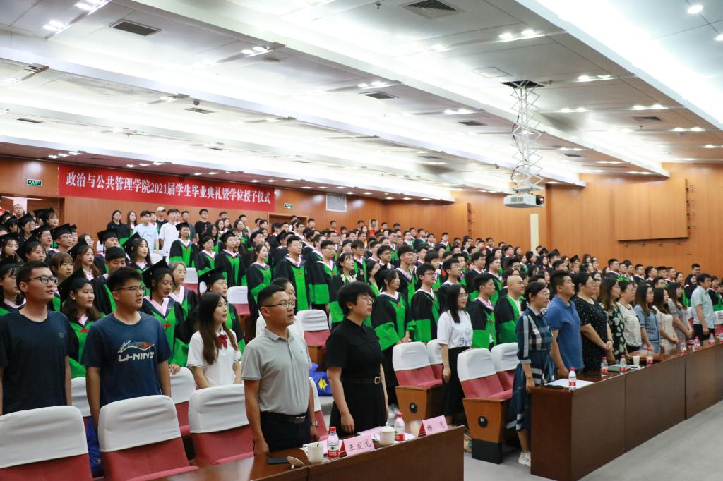 6月的山青,草木葱茏,艳阳高照。23日上午,政治与公共管理学院2021届学生毕业典礼暨学位授予仪式在图书馆学术报告厅隆重举行。政治与公共管理学院领导班子全体成员、学院各科室负责人、教师代表、2021届全体毕业生、2020届学生代表及学生家长代表参加毕业典礼。典礼由学院党总支书记丁萍主持。