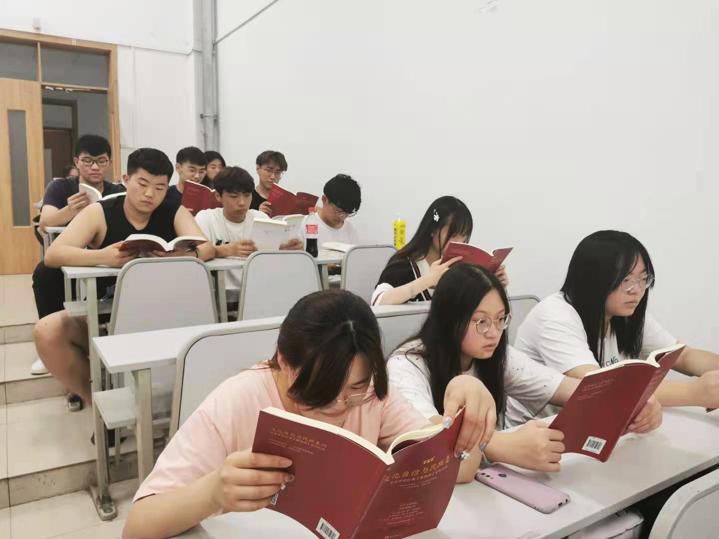 7月15日晚,学位班举行了“红色文化阅读分享会”,学员们就在开班仪式上所获赠书的阅读感受进行了分享,经过几天的集中学习,同学们对中国共产党百年波澜壮阔的风雨历程,对中国共产党人敢于斗争、敢于胜利、对党忠诚、不负人民的伟大精神有了更加深刻的认识。学员于思源分享到:“文化是一个国家、一个民族更深沉的力量,《文化自信与民族复兴》让我懂得我们要坚定文化自信,在传承与创新中延续中华传统文化的精神血脉。”