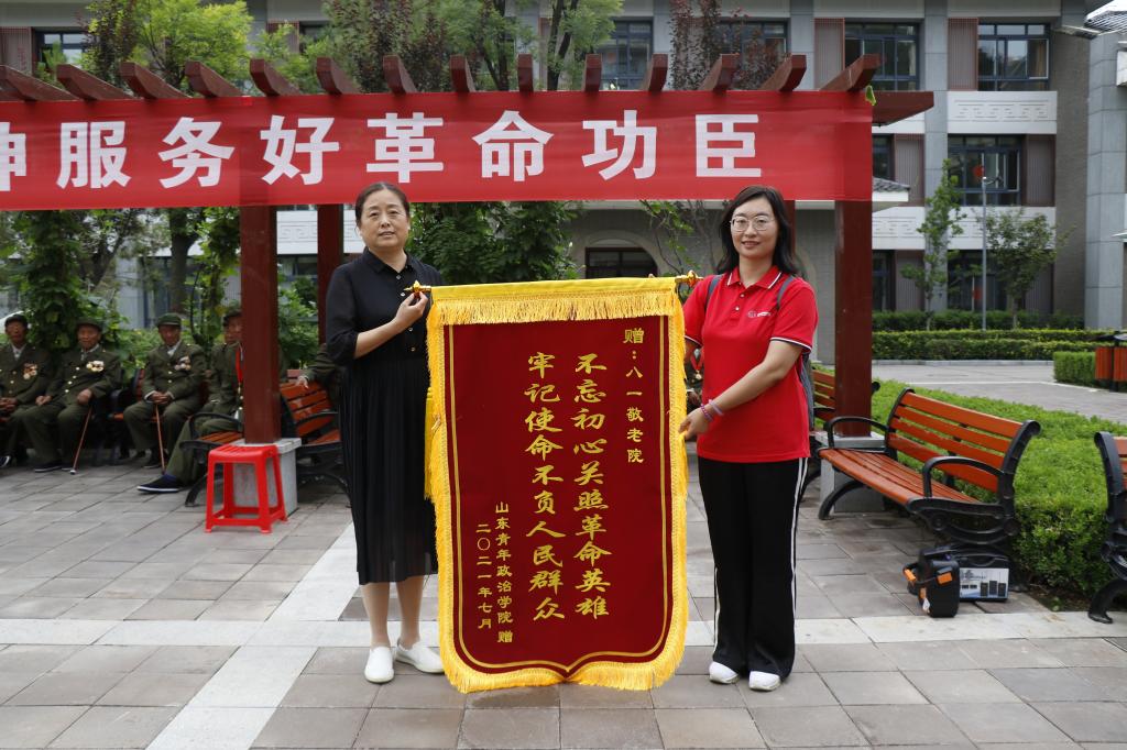 为深入了解延安精神,传承红色革命基因,7月26日下午,在中国共产党成立100周年和第94个建军节来临之际,山东青年政治学院青年领导力学位班“政青春”实践团在延安开展“听英雄讲党史”慰问活动,活动得到延安军分区大力支持,在军分区政治工作处李建波主任带领陪同下,实践团前往延安八一敬老院慰问革命老兵,向这些缔造延安精神的楷模们致敬。