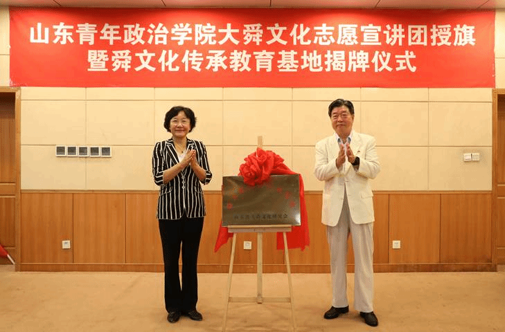 ▲谢玉堂、魏艳菊为舜文化传承教育基地揭牌