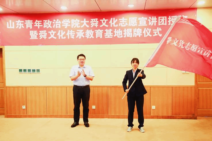 ▲张守珩为大舜文化志愿宣讲团授旗