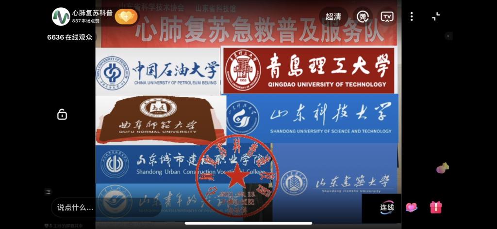 此次急救知识科普直播由山东青年政治学院“绿丝带”急救知识科普团队组织,该项目是山东省科学技术协会立项的科普示范工程项目,项目链接山东第一医科大学第一附属医院、齐鲁医院等优质医院资源,共建平台,共享资源,将各大医院心内科、麻醉科、急诊科的医生志愿者组织起来,大量大学生志愿者经培训合格后融入心肺复苏技能培训专业志愿服务队伍,把预防和急救的知识和技术公益普及给更多同学。接下来,项目团队将坚持把紧贴学生需求为牵引,继续以培训大学生心肺复苏志愿者为主线,紧密围绕急救知识专业内容,充分构思项目活动体系,提升团队品牌影响力,推动全社会关注急救,提高大学生及社会公众自救、互救能力。