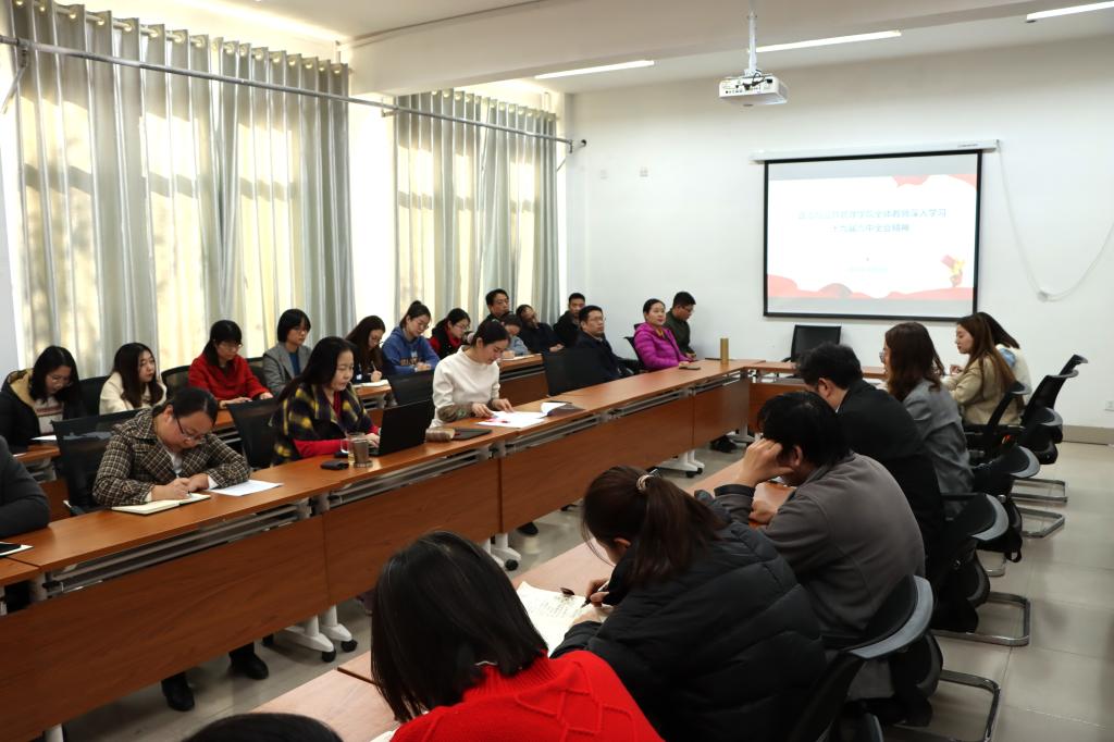 丁萍要求学院全体教师充分认识党的百年奋斗重大成就和历史经验的重要意义、历史背景和时代价值,主动深入开展党的十九届六中全会精神的专题学习,自觉提升理论水平。同时,要用好课程教学主渠道,发挥科研主阵地作用,把全会精神有效融入到铸魂育人工作中,贯彻党的教育方针,为党育人、为国育才,让学生从党的百年奋斗重大成就和历史经验中汲取砥砺前行的力量,培养德智体美劳全面发展的社会主义建设者和接班人,以优异成绩迎接党的二十大胜利召开。